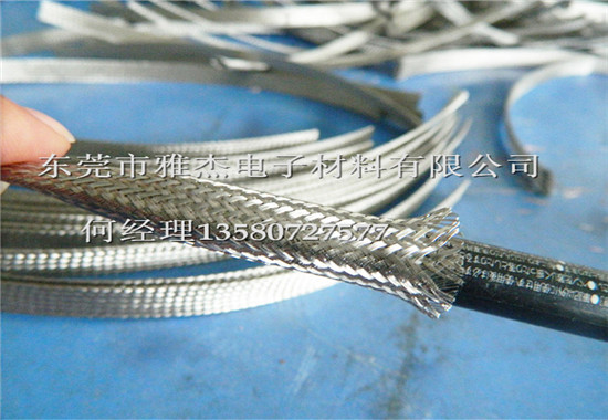 东莞市雅杰电子材料有限公司不锈钢编织网管,铜合金编织网管,金属网管,屏蔽网管系以镀锡铜金属丝(不锈钢丝或铜丝)编织成管状而成的套管。具有良好的弹性,伸缩性及平滑性,被广泛使用在电子、汽车、及航空、铁路设备等流动性排线的保护线束,线束屏蔽作用等,具有良好的耐磨性能。不锈钢编织带采用SUS304材质不锈钢丝加工而成,主要特性为产品耐腐蚀抗酸碱耐高温,广泛应用于化工工业之接地保护连接,耐高温。
